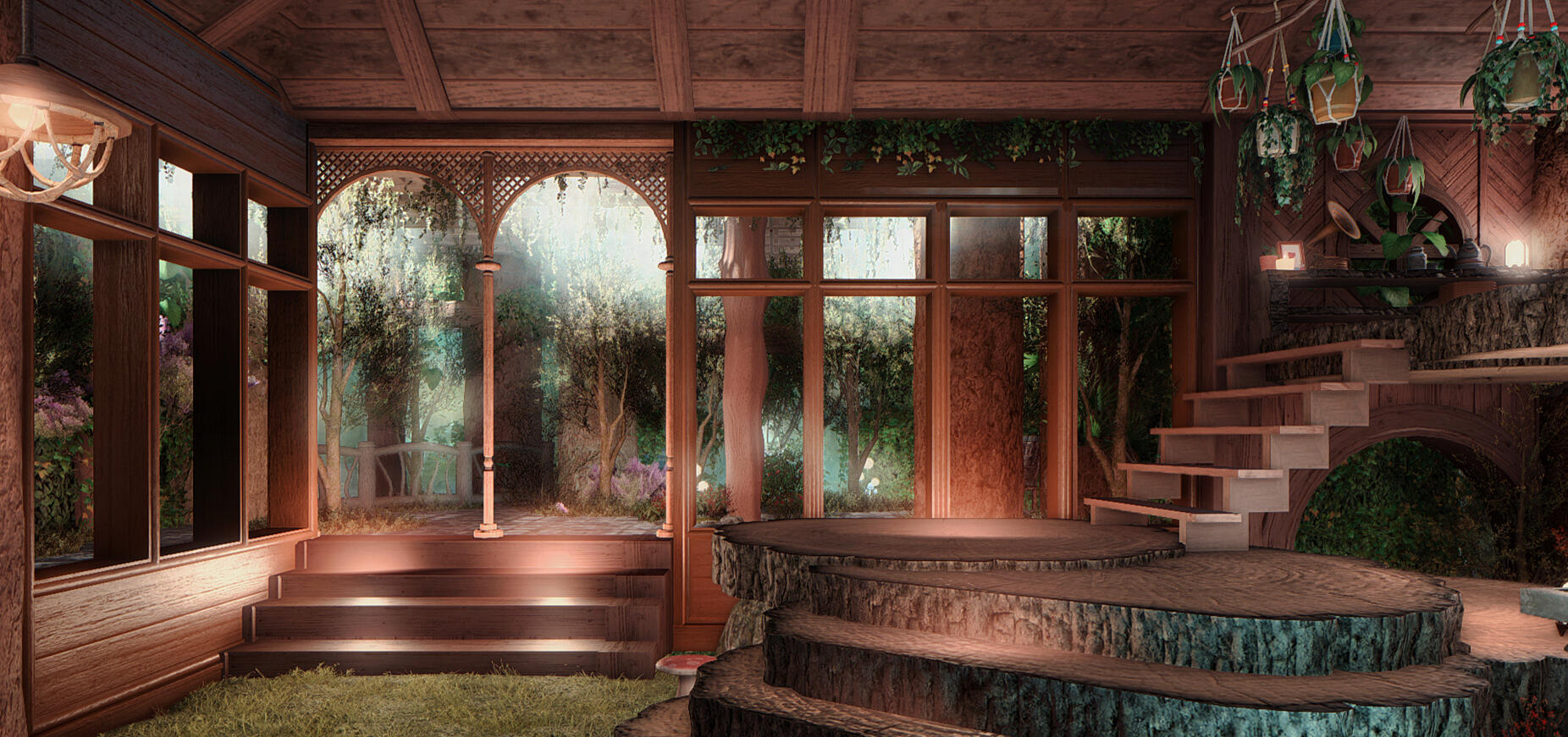 Fwosh created the current treehouse layout! I wanted to build a cozy space with lotsa cozy nooks for the parties <3 hope you enjoy!Here's my Housing Snap for some previous Lofi Lounge layouts! Feel free to ask me any questions.